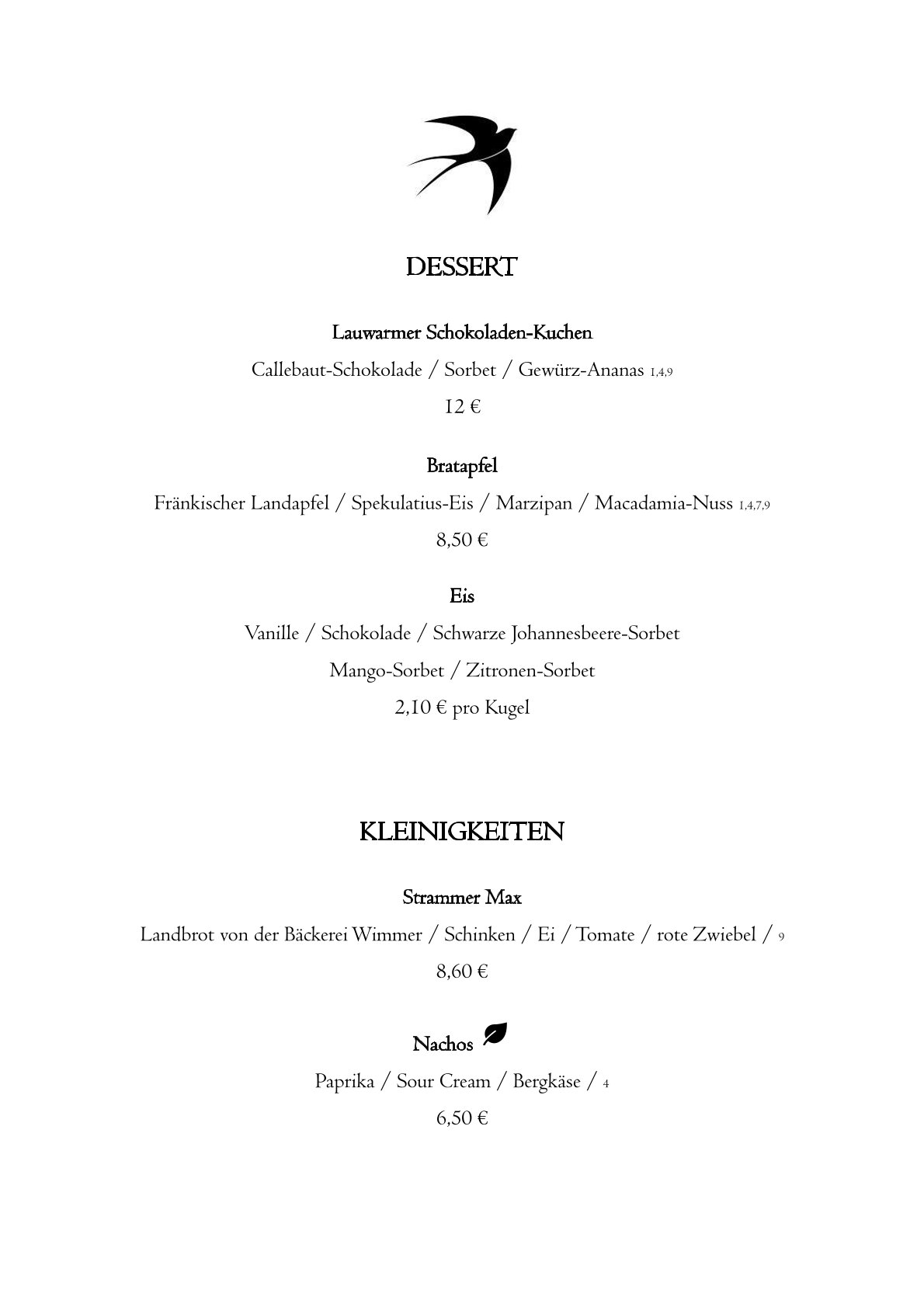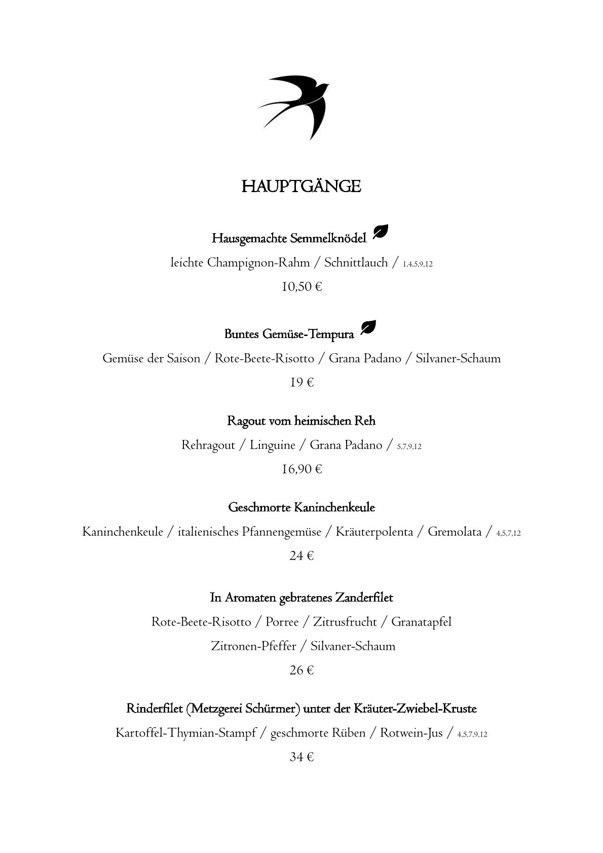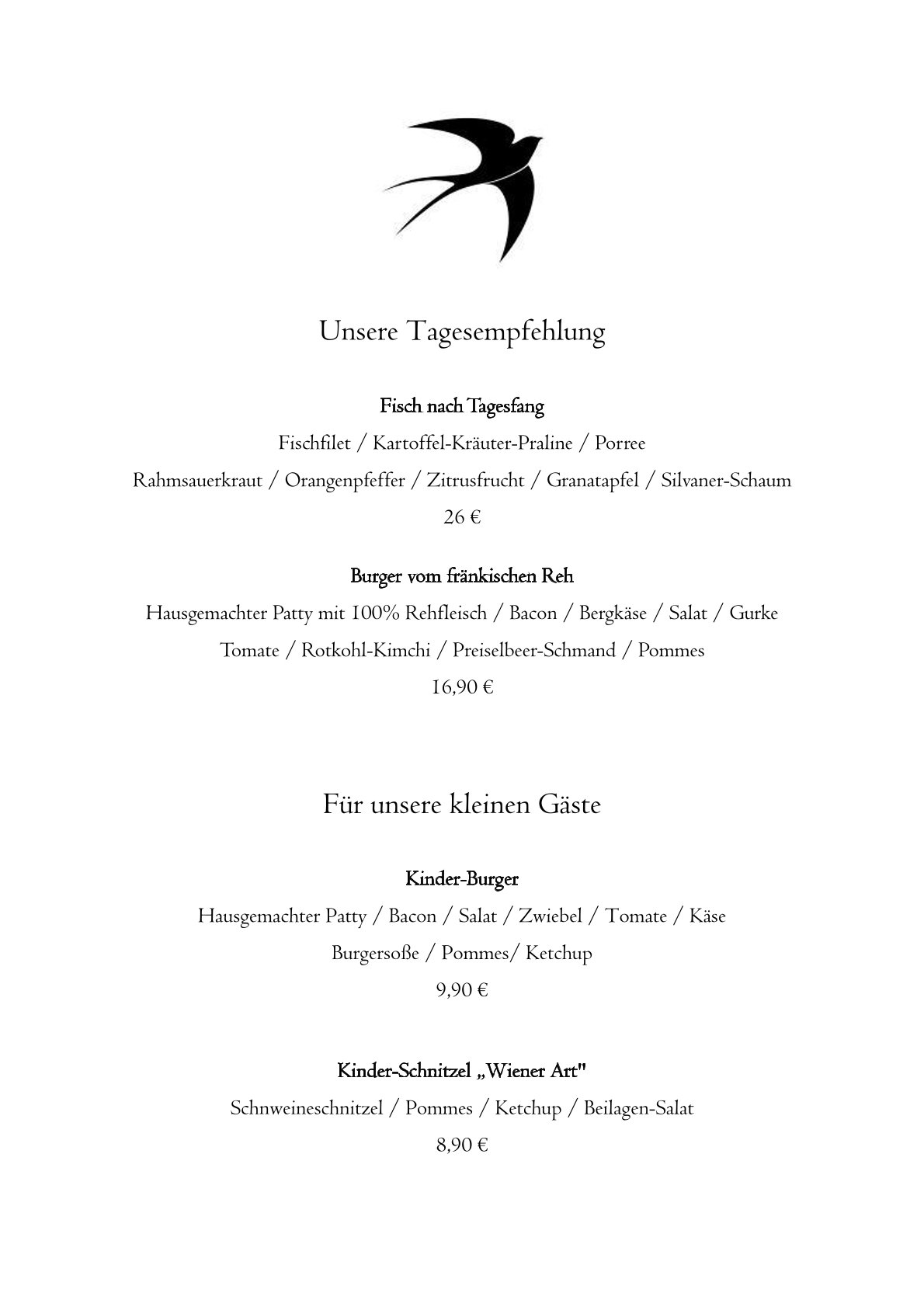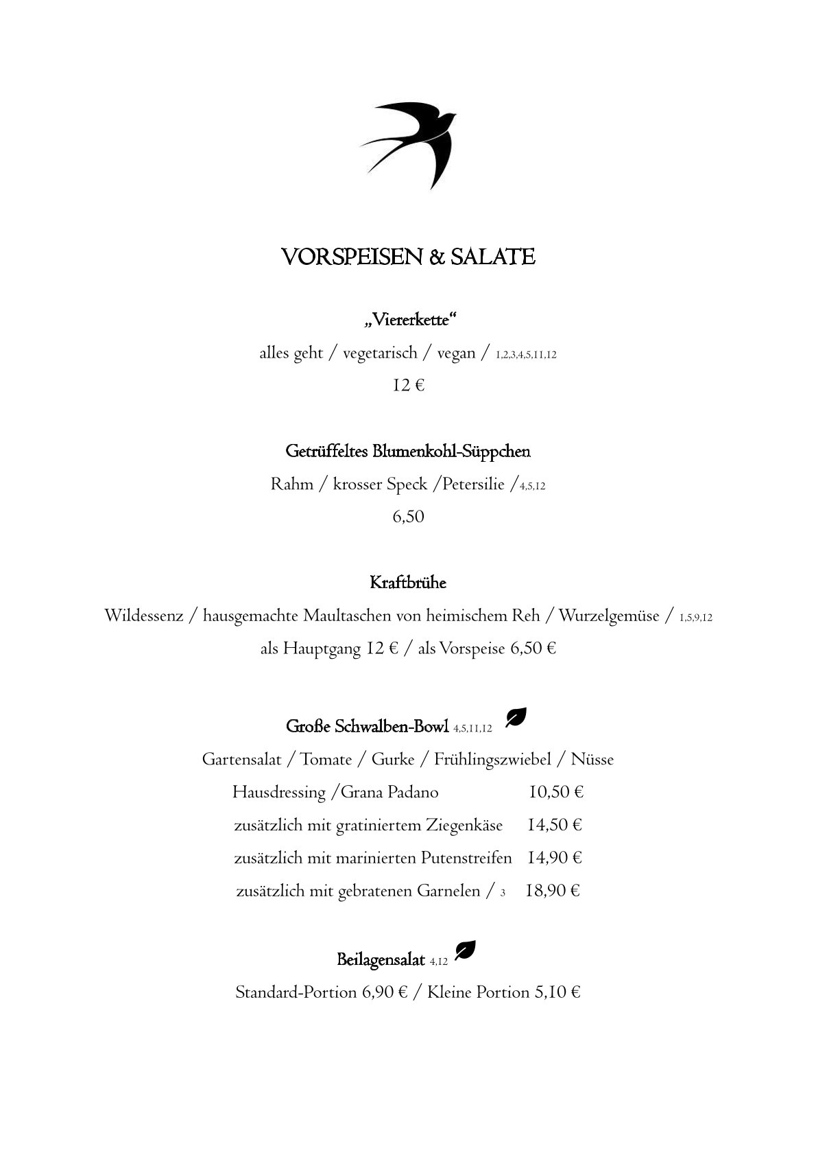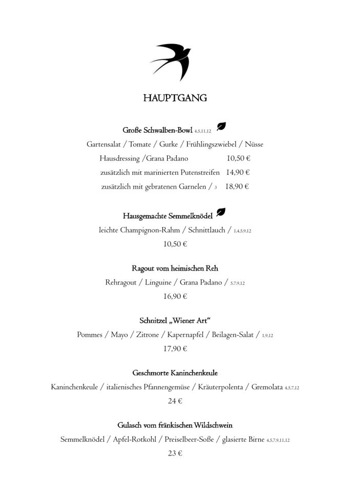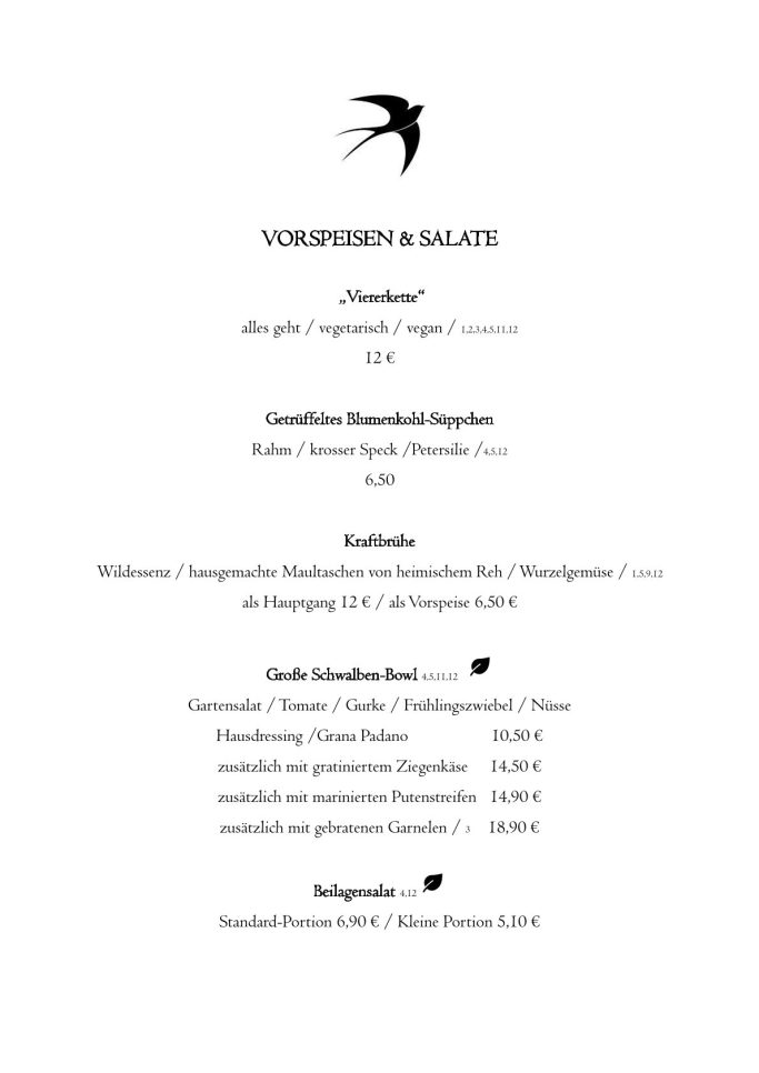 Aber probiert das leckere Essen in "Die Schwalbe" am besten selbst einmal aus! Hier könnt Ihr schon einmal einen Blick in unsere Speisekarte werfen - einfach zum Vergrößern auf die Karte klicken!