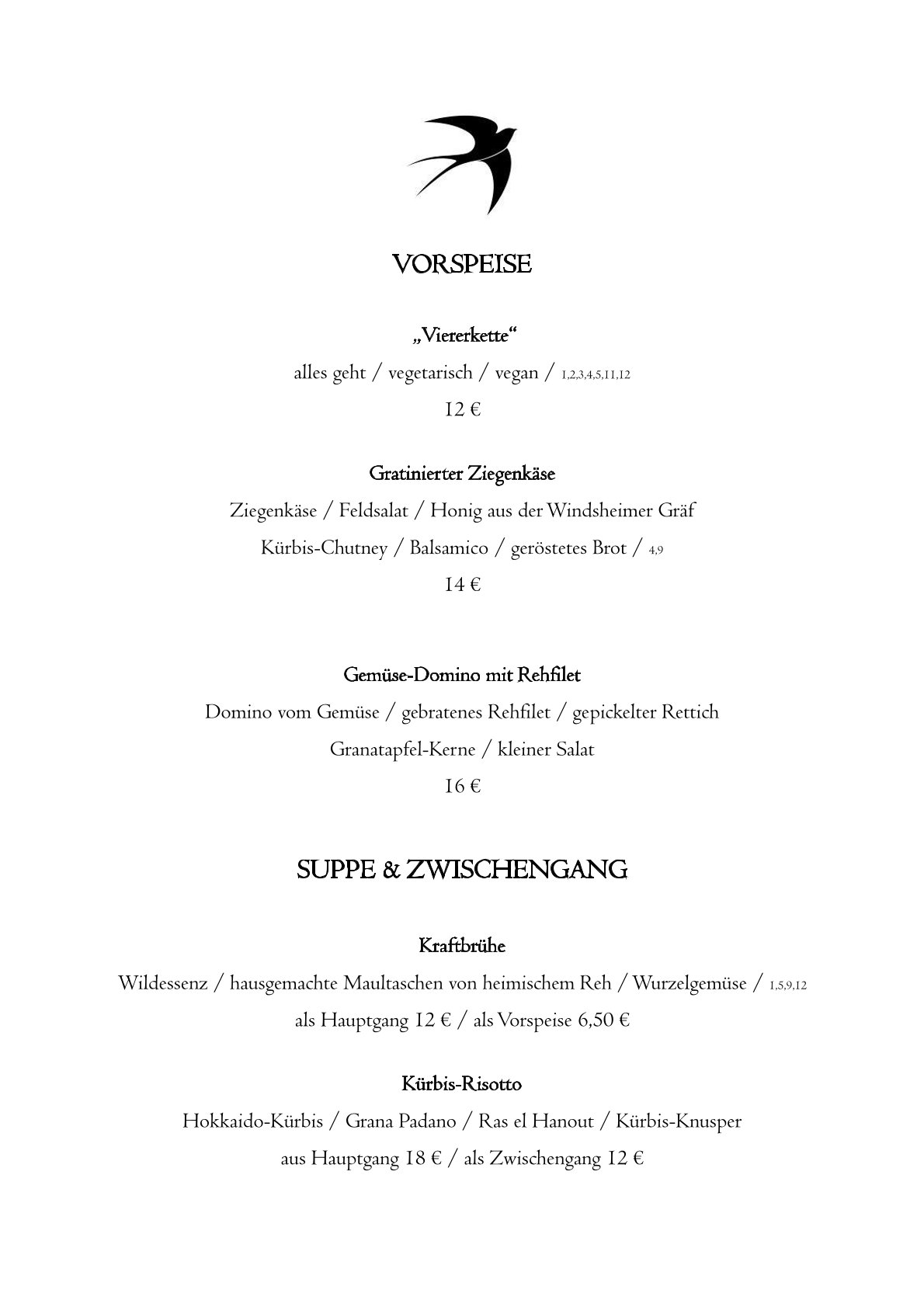 HINWEIS: Im Januar 2026 haben wir eine wechselnde Karte mit vielen kulinarischen Highlights, die wir nicht immer tagesaktuell auf der Webseite einstellen können. Unser Serviceteam berät Euch natürlich vor Ort oder gern auch vorab telefonisch. Danke :)